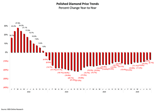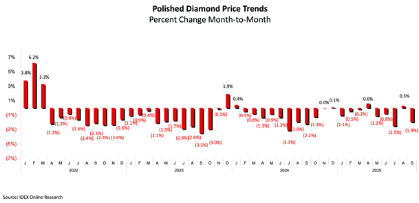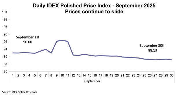 在美国将印度商品关税翻倍之前,IDEX成品钻价格指数曾短暂飙升,而9月份该指数下跌了2.08%。